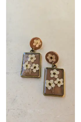 Handmade earrings with dried flowers, metalic frame and sterling silver 925 earring pins