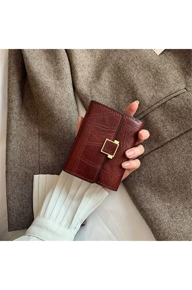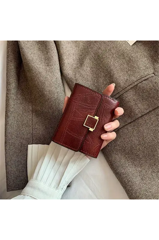 Portofoli vintage për gra sjell një kombinim të bukur mes stilit klasik dhe funksionalitetit modern. Me dizajn kompakt dhe format të hollë, ky portofol është i përsosur për të mbajtur monedha, karta dhe sende të vogla të përditshme pa zënë shumë hapësirë në çantë. Mbyllja me kapëse (snap closure) siguron ruajtje të sigurt të përmbajtjes, ndërsa brendësia e veshur me material poliestër shton qëndrueshmëri dhe e mbron përmbajtjen nga gërvishtjet.