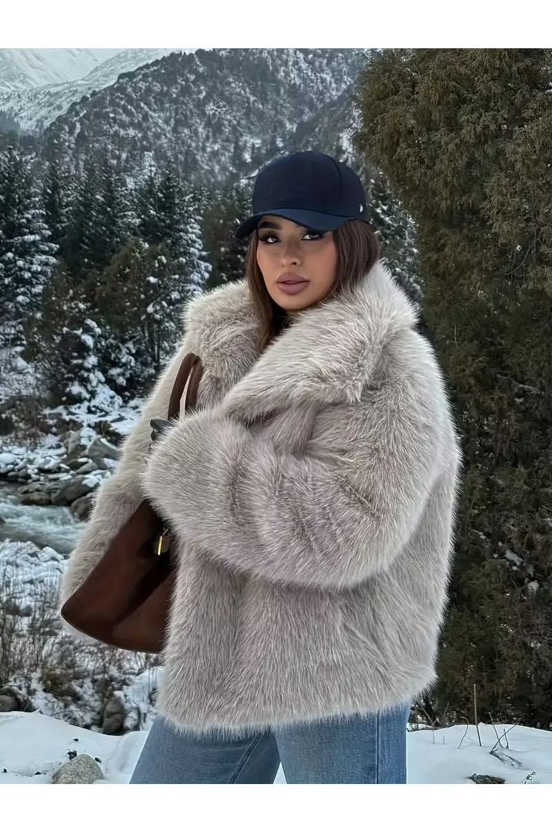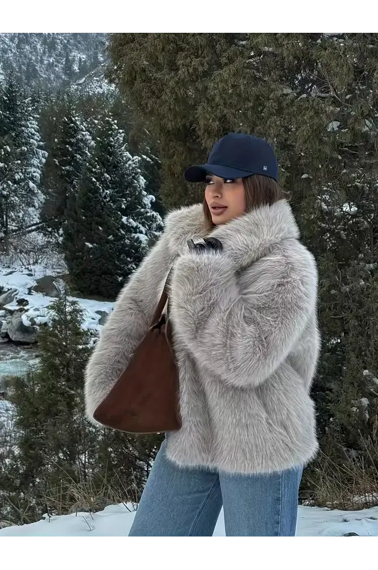 Palltoja e shkurtër e grave me gëzof sintetik të bardhë sjell një elegancë të menjëhershme në çdo veshje, duke kombinuar ngrohtësinë e dimrit me një pamje delikate dhe festive. Modeli me gjatësi të shkurtër dhe prerje të pastër krijon një siluetë moderne, ndërsa dekolteja V dhe jakat e formuara i japin një prekje të rafinuar që shkon lehtësisht si me veshje të përditshme, ashtu edhe me pamje më të veçanta për mbrëmje ose evente.