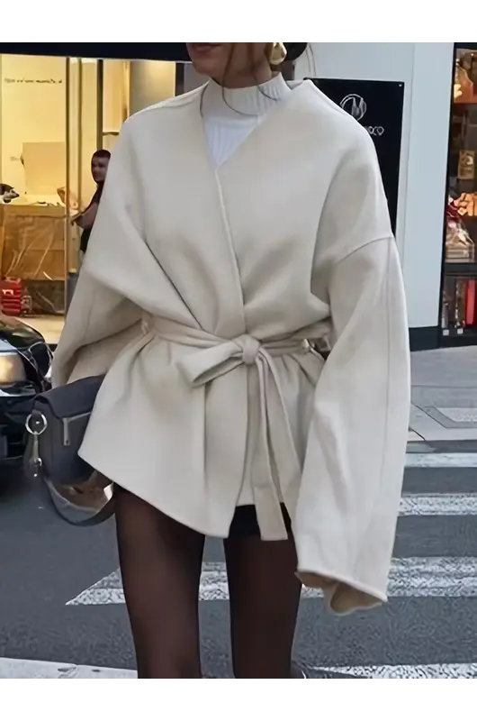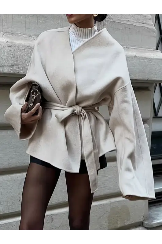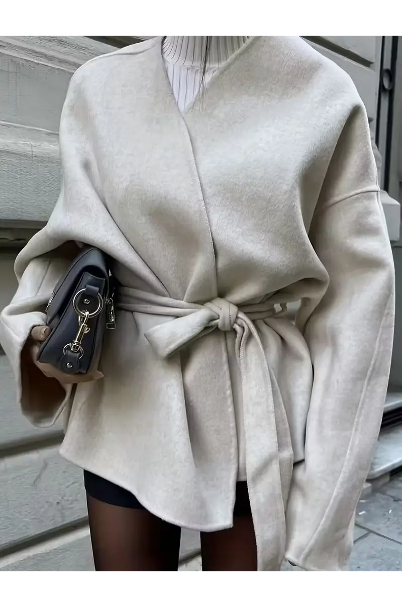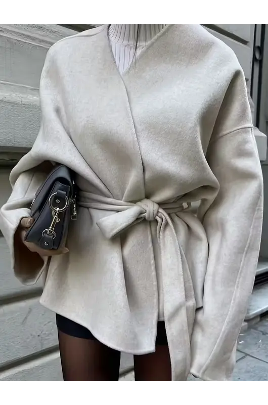 Xhaketa elegante e stilit francez për gra sjell një kombinim të rafinuar mes thjeshtësisë dhe finesës, ideale për sezonin vjeshtë–dimër. Me prerje të pastër dhe dekolte V që thekson bukur siluetën, kjo xhaketë vjen me mbyllje të dyfishtë – kopsa dhe lidhëse duke krijuar një pamje delikate dhe femërore, e cila përshtatet lehtësisht si për zyrë ashtu edhe për evente gjysmë-formale.