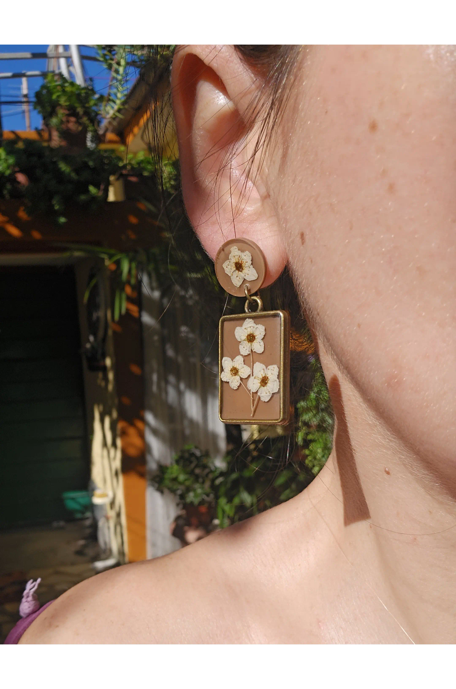 Preserving nature. Handmade accessories created by nature elements: flower, leaves, san...