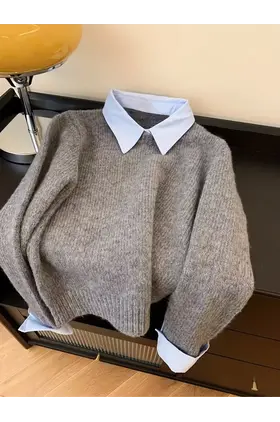 Pulovër Elegante Dyngjyrëshe për Femra. Me jakë kontrasti dhe mëngë të gjata.