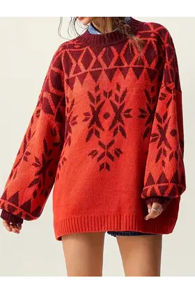 Pulovër e Kuqe & e Bardhë për Femra. Pulovër elegante festive me mëngë të gjata dhe jakë rrethore, ideale për festa Krishtlindjesh, zyrë apo veshje të përditshme. Material cilësor, i rehatshëm për sezonin e ftohtë.