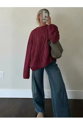 Pulovër për gra model i gjerë dhe komod, ideale për stinët e vjeshtës dhe dimrit. Ka mëngë të gjata, qafë rrethore klasike dhe një prerje të lirshme në stil tunik.